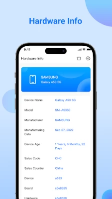π Device Info: Brand, Device Name, Model, Manufacturer, Manufactured Date, Device Age, Device, Board, Hardware.