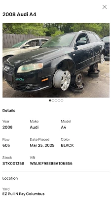 Live Inventory Search – Filter by year, make, model, or keyword before you head to the yard.