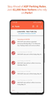 This app will help you get updates from New York City and Jersey City alternate side parking rule changes. These might include street cleaning schedules, parking schedule changes, and suspensions.