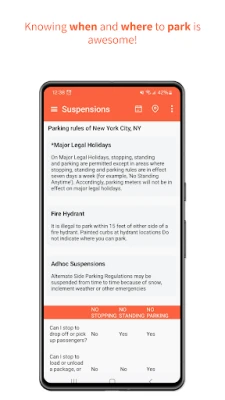 "The app will tell you about possible parking suspensions in the city, whether it is snow, rain, or holidays. Know in advance to NOT have to move your car in the snow. Awesome!!!"