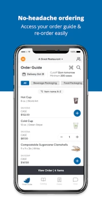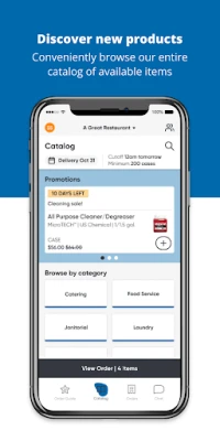 Our mobile app lets you search our complete product catalog, manage and update your ordering guide, and buy what you need at the moment you need it. It’s part of our commitment to giving you an ordering experience you’ll love.