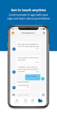 - No-headache ordering: access our full catalog & re-order easily - Better manage deliveries: track order status and view full order history - Keep everything together: delivery days, cutoff times, order updates, and promotions all in one - place - Align your team: Fully viewable records of chats and order history to make sure everyone stays on - the same page - Get in touch anytime: communicate directly with your Regional Distributors rep in the app