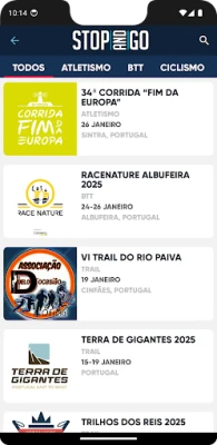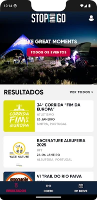 A partir da app todos os atletas ou espetadores podem acompanhar todas as informações antes, durante e no fim de todos os eventos. São funcionalidades da app: - Resultados em live e após os eventos; - Histórico de eventos passados; - Info sobre os eventos; - Mapa e gráficos da tua prestação; - Calendário com pesquisa de eventos e modalidades; Estaremos a realizar novos desenvolvimentos na tentativa de melhorar a app, nesse sentido estamos disponíveis para ter os vossos feedbacks. Mais informações sobre a STOPANDGO em www.stopandgo.net.