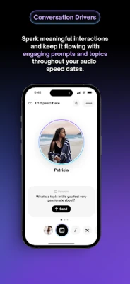 Hear someone you like? Send a 1:1 request for a 3-minute speed date with built-in icebreakers and conversation starters (so long, awkward silences). If they’re not online, save their profile for later—because good things are worth the wait.